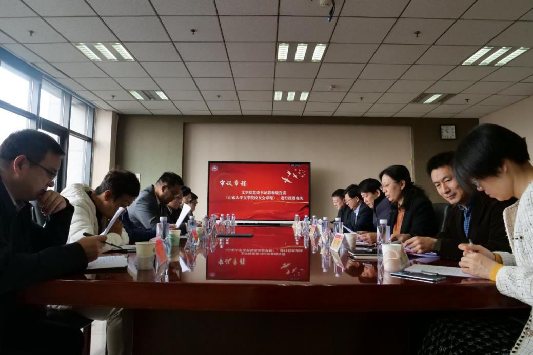 张帅宣读了校友理事会聘任名单,黄发有为校友理事会成员颁发聘书。随后,文学院党委书记郭春晓宣读《山东大学文学院校友会章程》,与会人员进行投票表决。