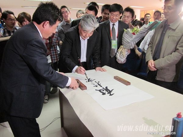 报告结束后,王文泽校友欣然为在场的师生们题“敢于突破,勇于创新”之字,来激励能动学子。会后,同学们纷纷表示:‘听君一席话,胜读十年书’,老校友的讲话让我们知道了该怎样科学地学习、工作、生活,并为我们指明了未来前进的方向。”学院党委副书记史良君、副院长董勇出席了报告会,能动学院全体研究生和部分本科生参加了报告会。