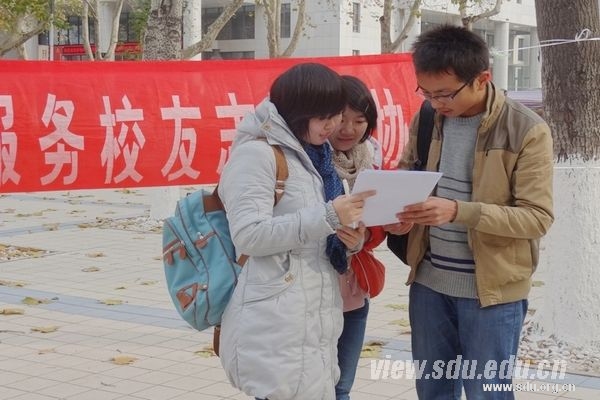 11月30日至12月2日,由山东大学校友工作办公室、校团委联合主办,山东大学服务校友志愿者协会承办的2012年度“山东大学十大杰出校友”候选人学生评选活动在中心校区食堂南门进行现场投票。