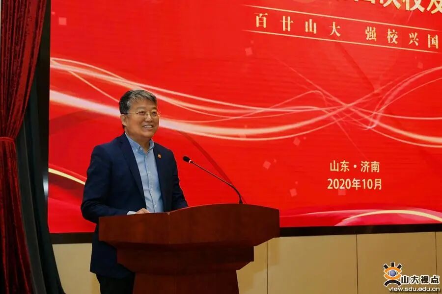 郭新立欢迎校友们荣归母校,畅叙友谊,共谋发展,感谢校友对母校尤其是疫情防控期间作出的重要贡献。他表示,校友是母校发展最可依赖、最可信任的强大力量;具有先进性、引领性的山大文化,以及由此形成的广泛山大自信、山大共识,是母校建设世界一流大学的最大禀赋优势和最强驱动力量。面向百廿校庆,郭新立号召全体校友以“强校兴国”为使命担当,关心校庆、参与校庆、共享校庆,与母校携手,将百廿校庆办成有高度、有厚度、有温度的文化盛宴,充分激发强校兴国的精神动力,更加坚定强校兴国的行动自觉,推动实现强校兴国的历史跨越,以优异的成绩向中国共产党成立100周年献礼,为实现中华民族伟大复兴中国梦汇聚磅礴合力、作出山大贡献。