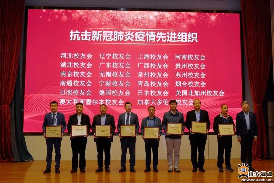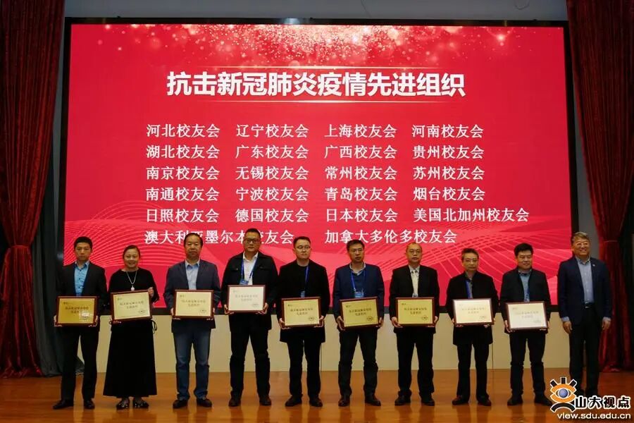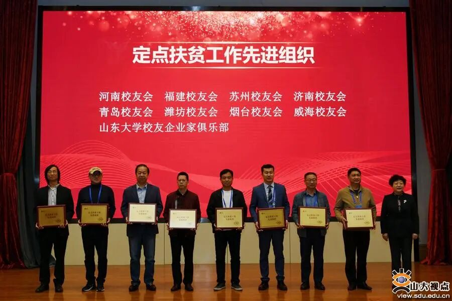 樊丽明为“定点扶贫工作先进组织”颁奖。会上选举产生了山东大学校友会第四届理事会,樊丽明等157人当选理事。