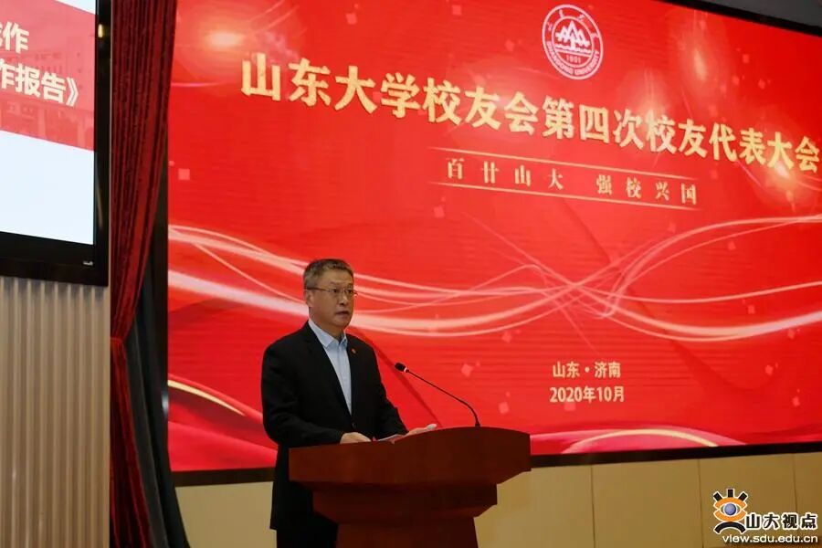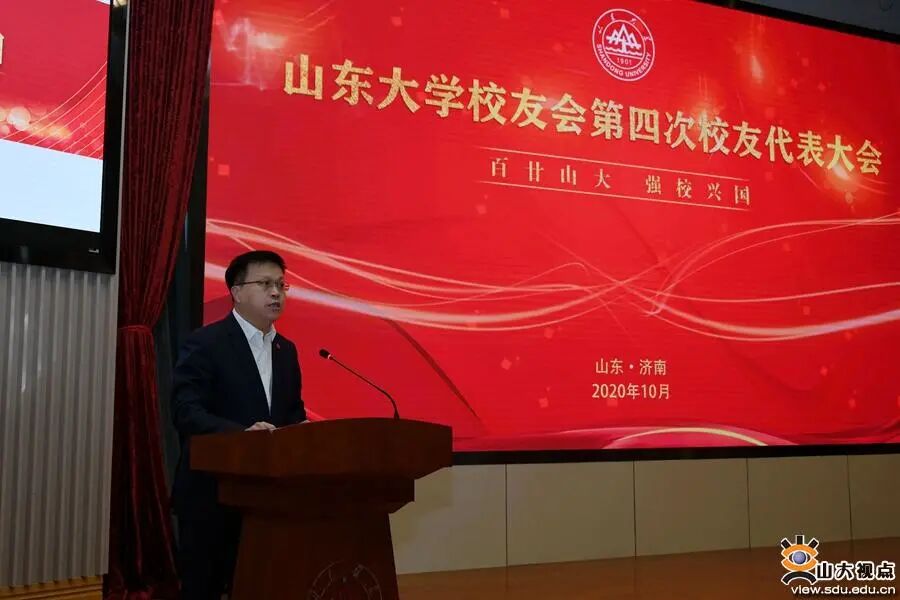 10月24日,山东大学校友会第四次校友代表大会在中心校区召开。中国科学院院士、化学77级校友江桂斌出席会议。山东大学党委书记郭新立、校长樊丽明出席会议并讲话。会上,樊丽明被选举为山东大学校友会新一届会长。