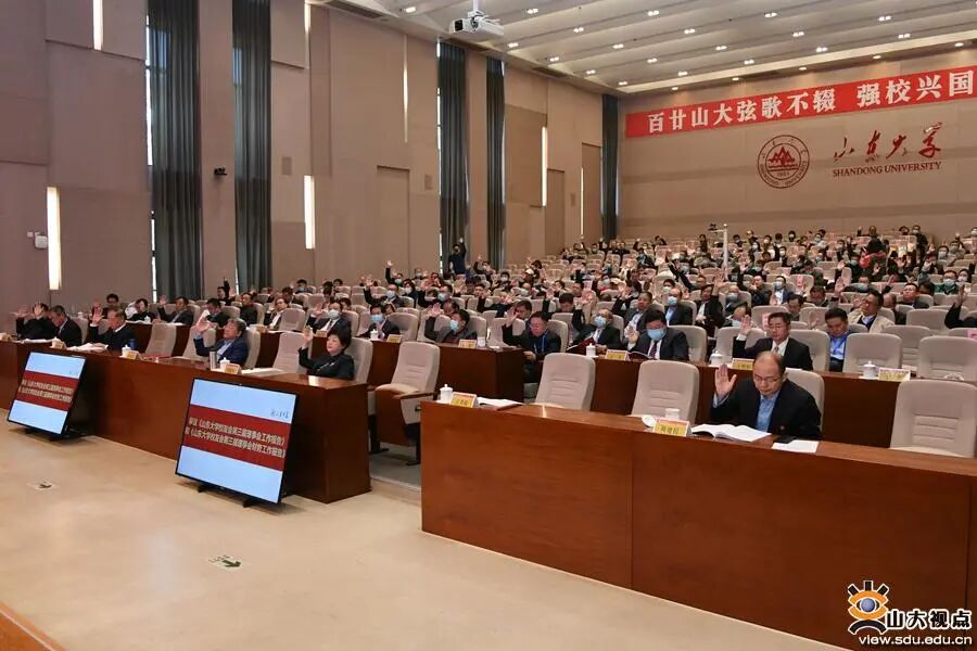 在校友代表大会第一次全体会议上,校友代表审议通过了《山东大学校友会第三届理事会工作报告》《山东大学校友会第三届理事会财务工作报告》《山东大学校友会章程(修改草案)》。威海校友会、管理学院校友会作大会工作交流报告,威海校友会率先发起《强校兴国 山大人在行动》倡议,倡议全体山大人凝心聚力,借助百廿校庆契机,勇担强校兴国历史使命,支持母校、贡献社会。