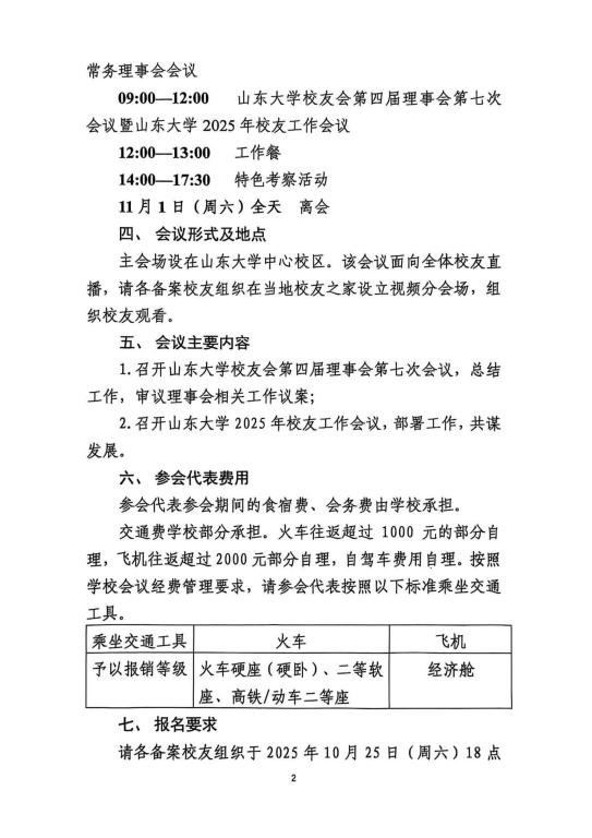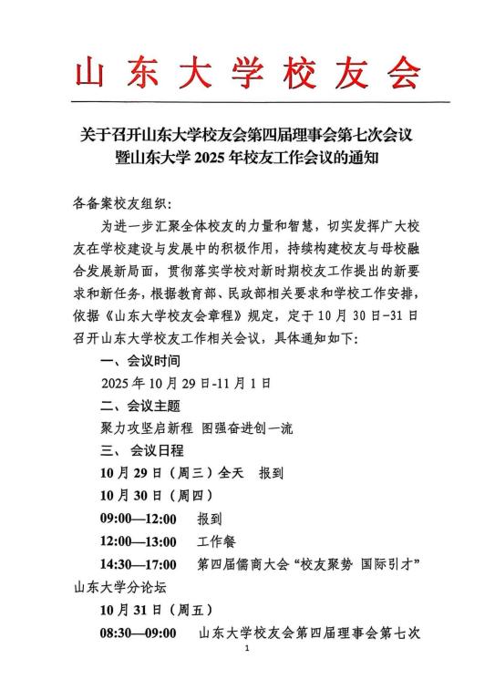 关于召开山东大学校友会第四届理事会第七次会议暨山东大学2025年校友工作会议的通知